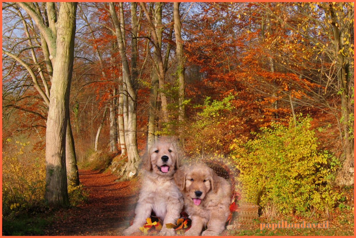 Le fond est beau et les petits chiens adorables.